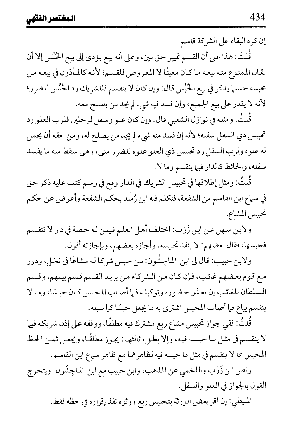 قُلتُ: رجوعه ملكًا ظاهر في جواز بيعه اختيارًا بعد رجوعه، وذلك يمنع كونه حبسًا حقيقة؛ لأن خاصته تمنع مبيعه اختيارًا.