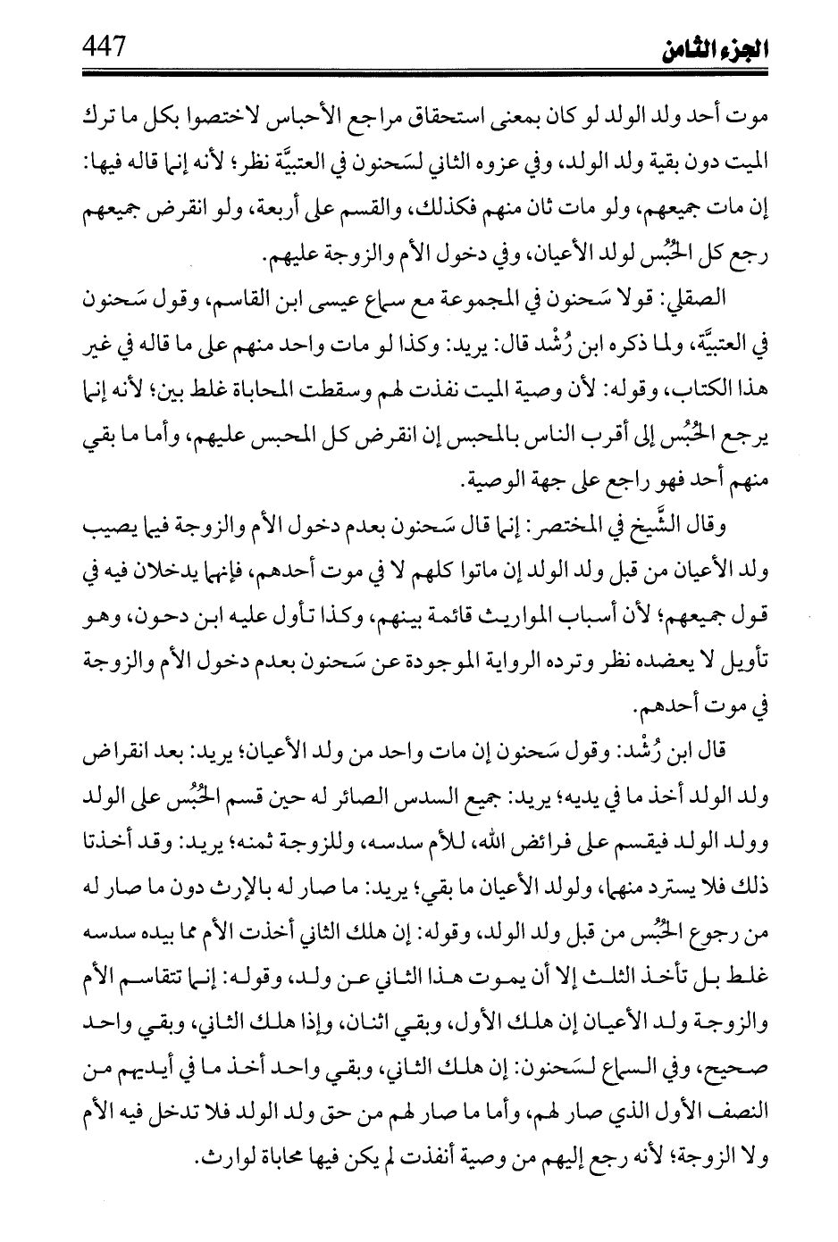 والشيخ عن ابن كنانه قائلاً: من مات منهم فحظه لورثته على إرثهم حبساً.