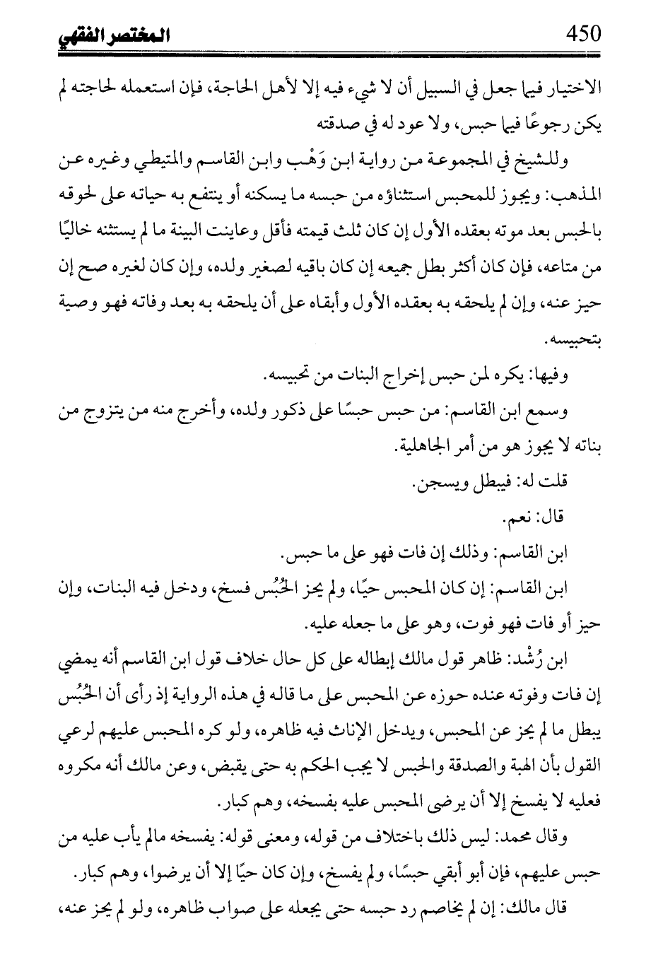 ابن شاس: في مختصر الوقار جائز أن يحبس على الذكر دون الإناث، وعكسه.