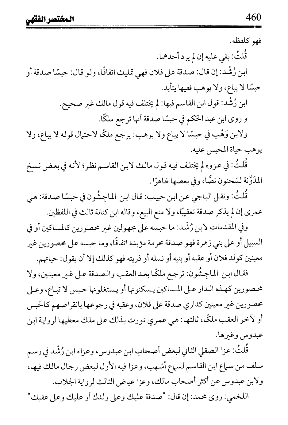 ابن رُشْد: في أول رسم من سماع ابن القاسم في قصر رجوعه على عصبة المحبس