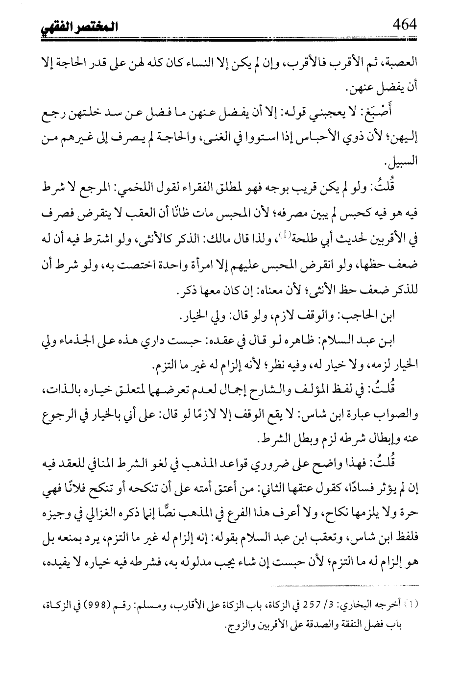 الشَّيخ في الموازيَّة والمجموعة عن عبد الملك: من قال: داري حبس على عقبي، وهي لأحدهم ملك فهي لآخرهم كذلك، وقيل: ذلك محبسة إن كان آخرهم امرأة فلها