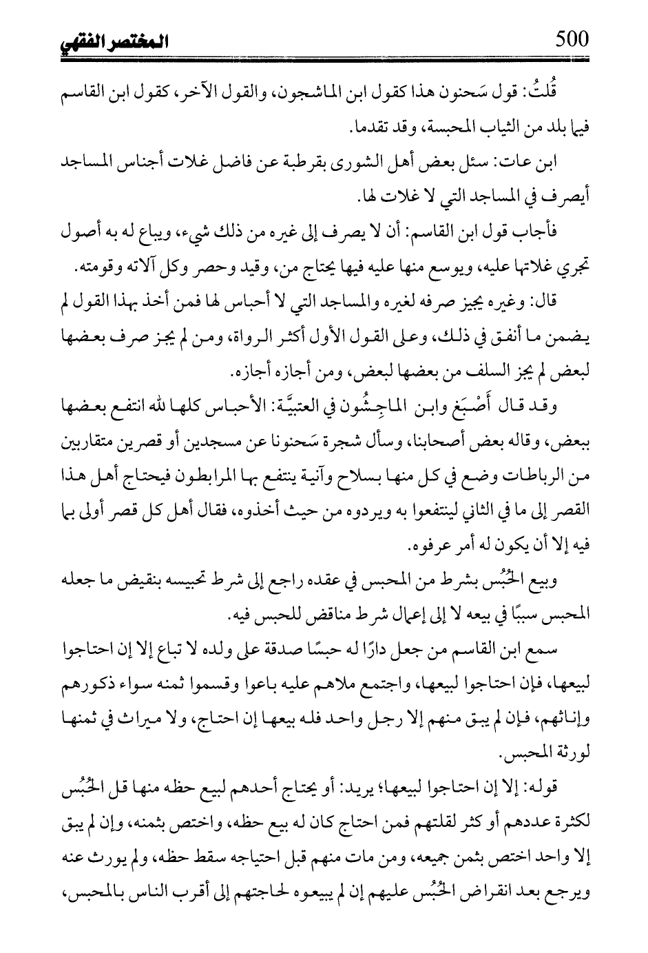 قال: والحبس على غير معين كالمرضى والمساكين أو مسجد أو قنطرة يجوز لمدة طويلة، واستحسن قضاة قرطبة كونه لأربعة أعوام خوف اندراسه بطول مكثه بيد مكتريه، وقال عبد الملك في المبسوط: المقدم على الأحباس لينقذها في أهلها، وهي معقبة إنما يكريها السنة والسنتين، فإن مات قبل ذلك نفذ الكراء، ولحائزها لنفسه كراؤها لنفسه الخمس والست.