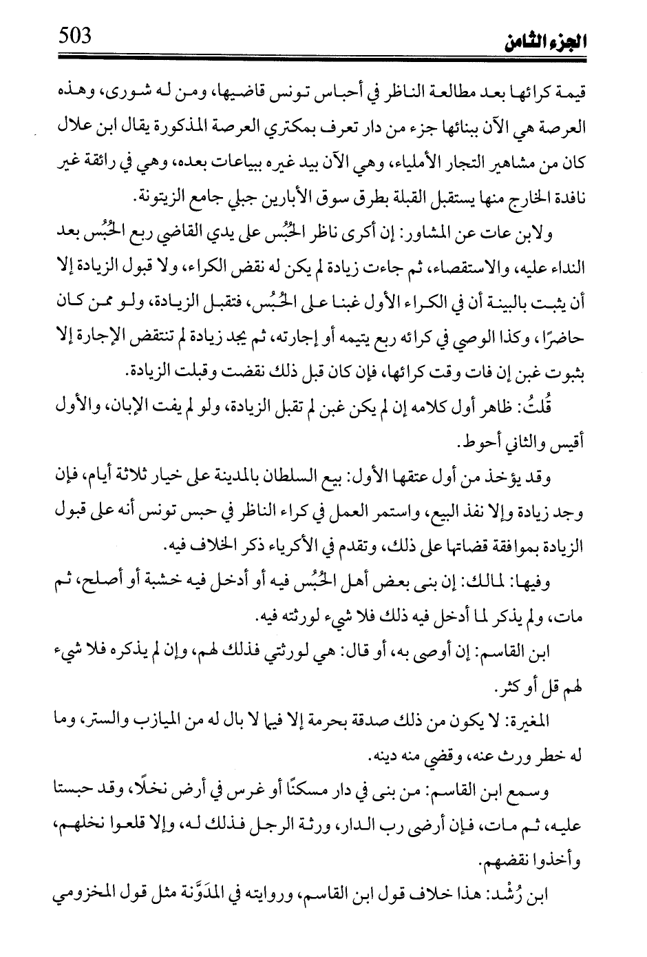 وتقدم تفسيره في نوازل عيسى من كتاب السداد: وإن كان للحبس كراء قبل بناء هذا الباني كان عليه لإشراكه ما يجب لهم من الكراء اتفاقاً.