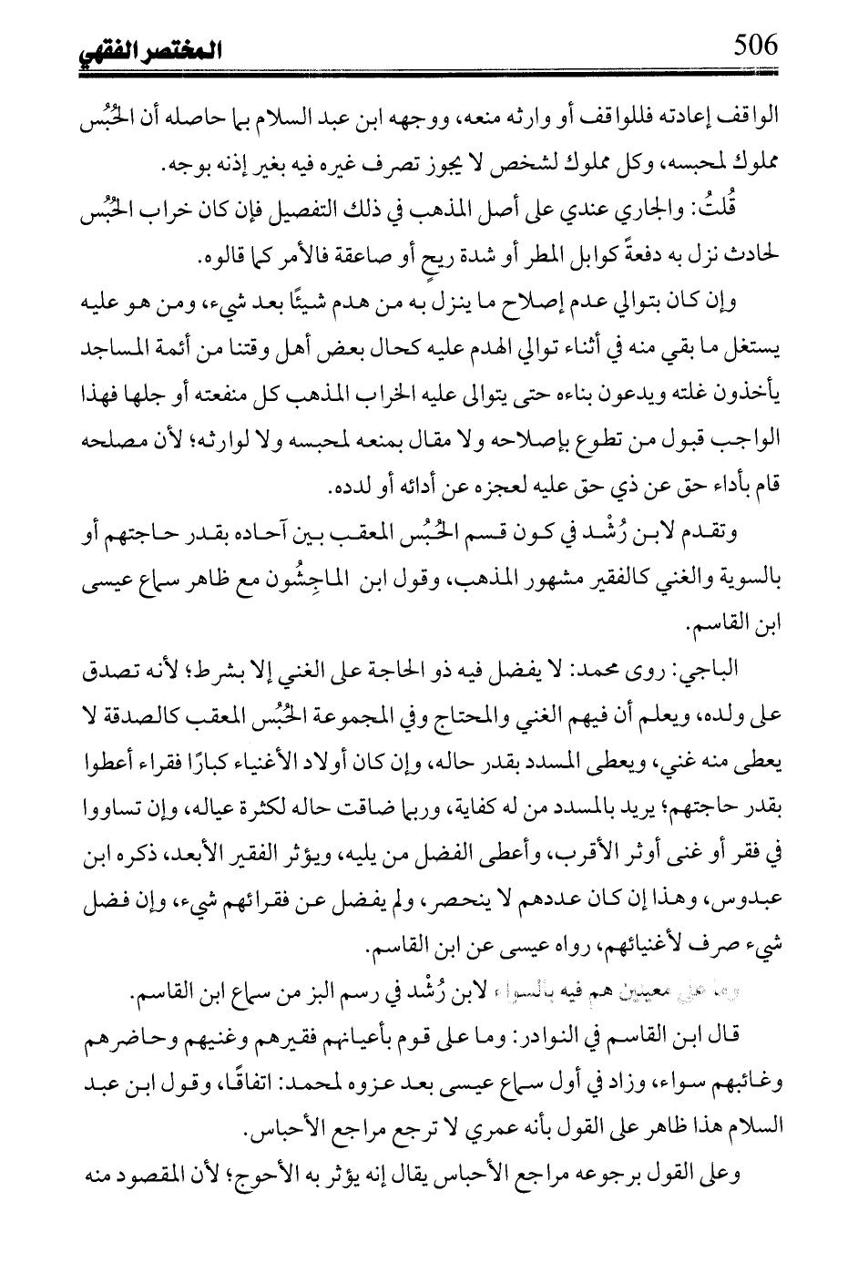 قلت: في لفظه، ولفظ ابن الحاجب إجمال؛ لأن ظاهر لفظهما سواء كان الحبس على عقب وتحوه أو على الفقراء فسكن بعضهم لا تصافه بالفقر، ثم استغنى أنه لا يخرج لغيره، وليس الأمر كذلك.