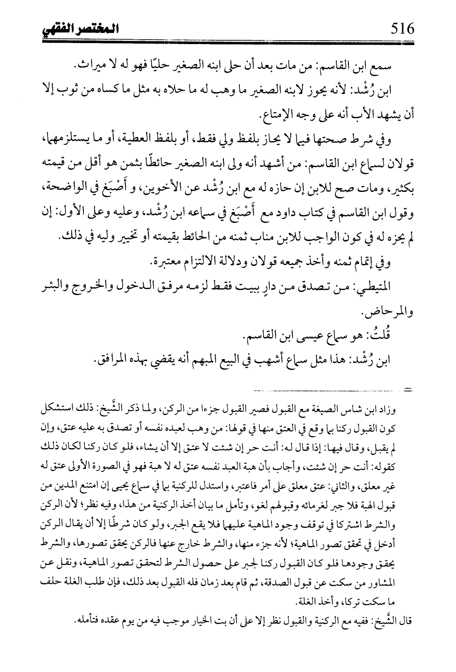 ومن دليل كونه ركناً سماع يحيي ابن القاسم: إن امتنع مدين من قبول هبة فلا جبر لغرمائه عليه وقبولهم لغو.