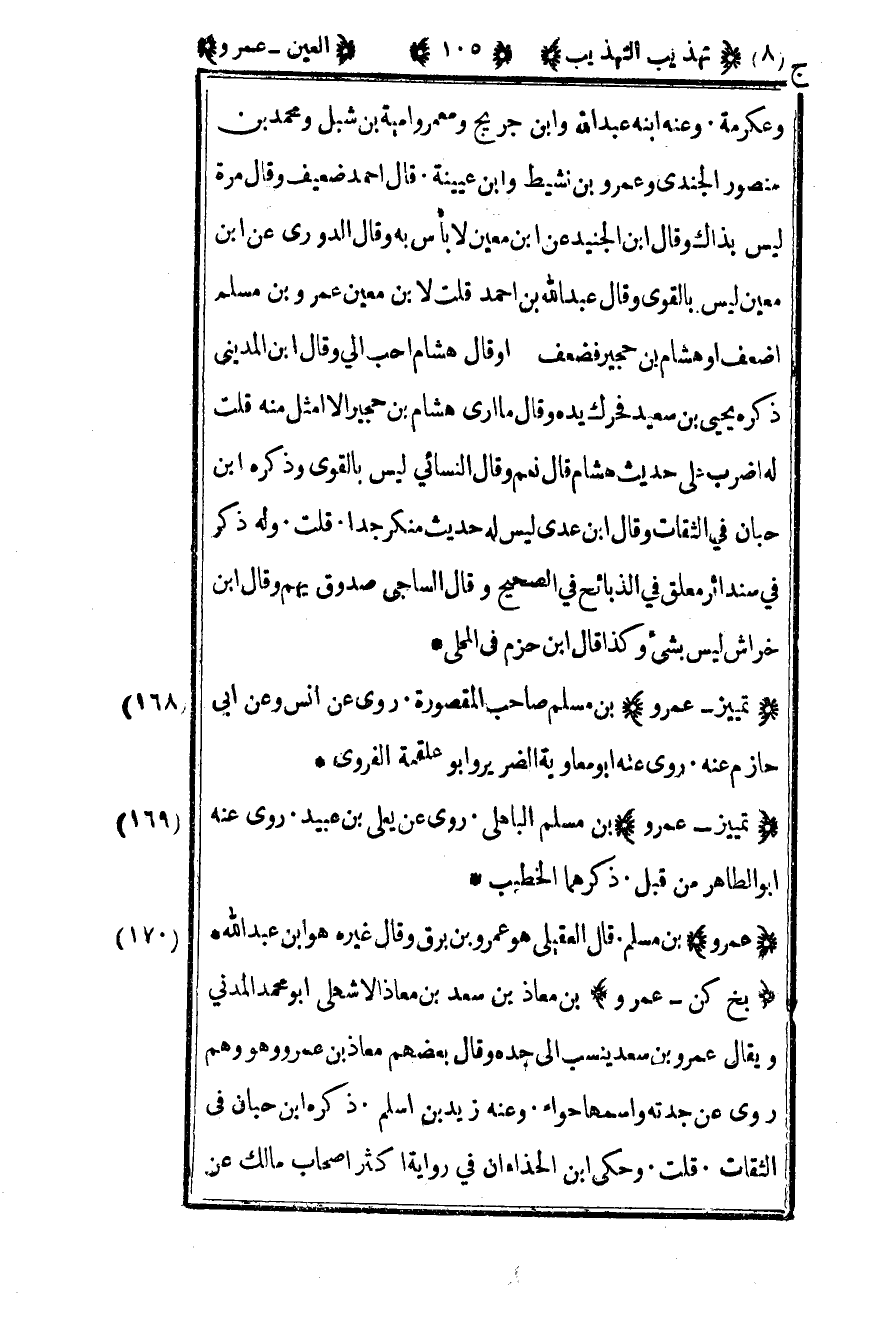 168- "تمييز – عمرو" بن مسلم صاحب المقصورة روى عن أنس وعن أبي حازم عنه روى عنه أبو معاوية الضرير وأبو علقمة الفروي