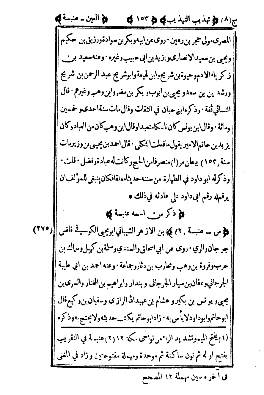 1 عنبسة في التقريب بفتح أوله ثم نون ساكنة ثم موحدة ومهملة مفتوحتين وزاد في المغني في آخره سين مهملة 12 المصحح