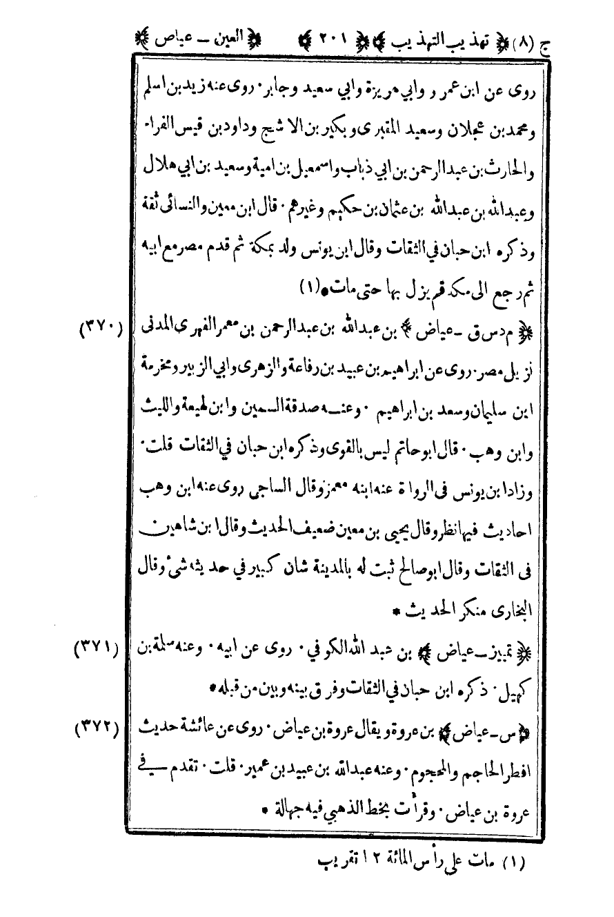 372- "تمييز – عياض" بن عبد الله الكوفي روى عن أبيه وعنه سلمة بن كهيل ذكره بن حبان في الثقات وفرق بينه وبين من قبلة