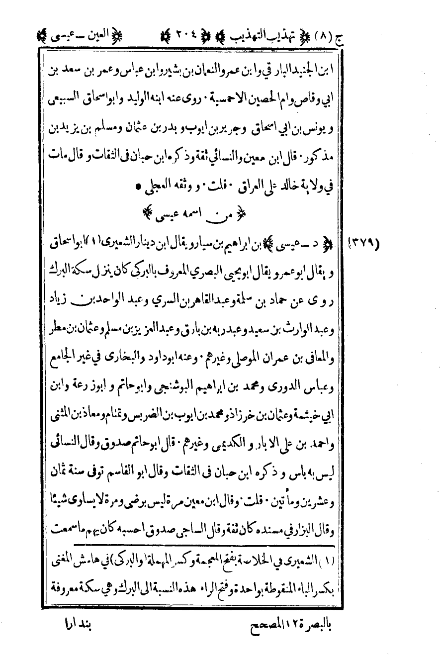 1 الشعيري في الخلاصة بفتح المعجمة وكسر المهملة "والبركي" في هامش المغني بكسر الياء المنقوطة بواحدة وفتح الراء هذه النسبة إلي البرك وهي سكة معروفة بالبصرة 12 المصحح
