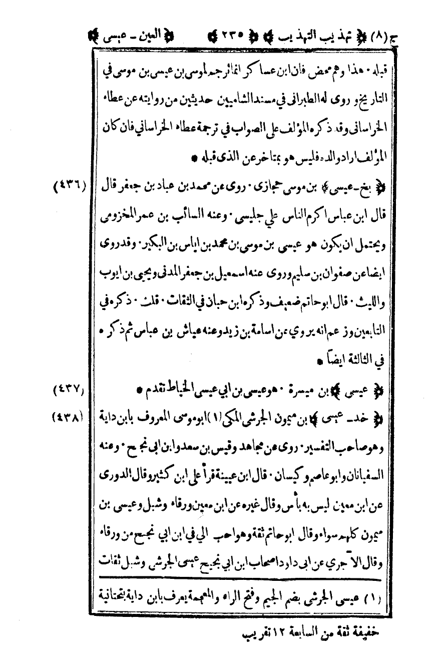 1 عيسي الجرشي بضم الجيم وفتح الراء والمعجمة يعرف بابن داية بتحتانية خفيفة ثقة من السابعة 12 تقريب