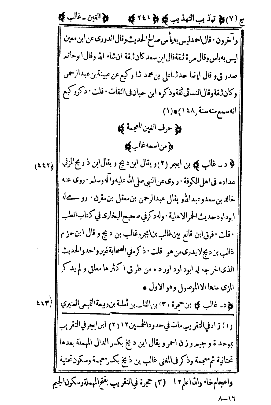 444- "د – غالب" بن حجرة2 بن التلب بن ثعلبة بن ربيعة التميمي العنبري