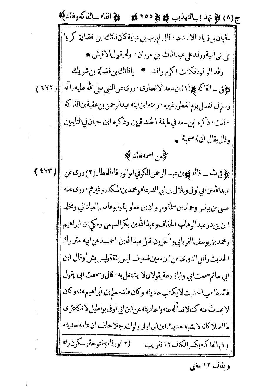 473– "ق – الفاكه1" بن سعد الأنصاري روى عن النبي صلى الله عليه وسلم في الغسل يوم الفطر وغيره وعنه بن ابنه عبد الرحمن بن عقبة بن الفاكه قلت ذكره بن سعد في طبقة الخندقين وذكره بن حبان في التابعين وقال يقال أن له صحبة