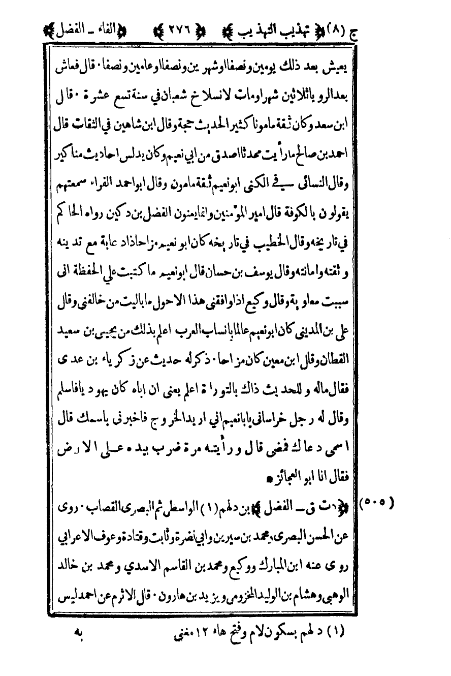 506– "دت ق – الفضل" بن دلهم1 الواسطي ثم البصري القصاب روى عن الحسن البصري ومحمد بن سيرين وأبي نضرة وثابت وقتادة وعرف الأعرابي روى عنه بن المبارك ووكيع ومحمد بن القاسم الأسدي ومحمد بن الخالد الوهبي وهشام بن الوليد المخزومي ويزيد بن هارون قال الأثرم عن أحمد ليس