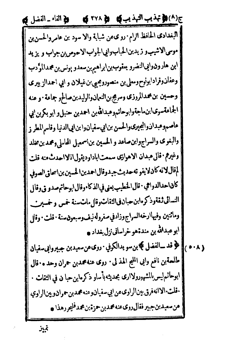 509– "قد – الفضل" بن سويد الكوفي روى عن سعيد بن جبر وأبي سفيان طلحة بن نافع وأبي المليح الهذلي روى عنه محمد بن حمران وحده قال أبو حاتم ليس بالمشهور ولا أرى بحديثه بأسا وذكره بن حبان في الثقات قلت إلا أنه فرق بين الراوي عن أبي سفيان وعنه محمد بن حمران وبين الراوي عن سعيد بن جبير فقال روى عنه محمد بن حمزة بن محمد فليحرر هذا