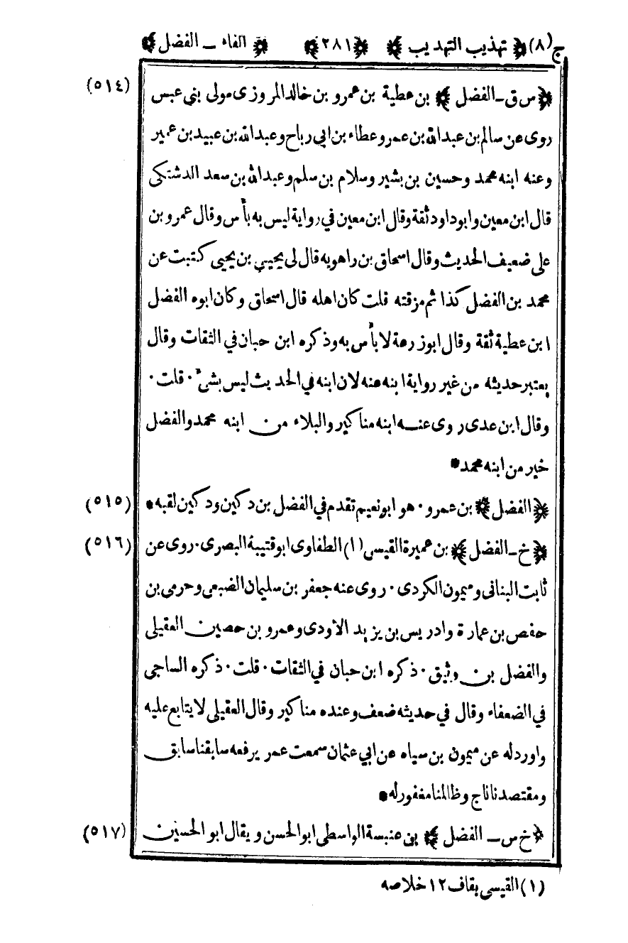519-" خ س – الفضل" بن عنبسة الواسطي أبو الحسن ويقال أبو الحسين