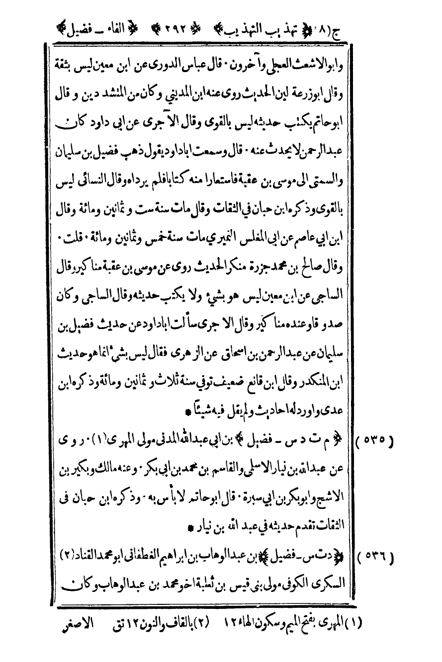 537– "م ت د س – فضيل" بن أبي عبد الله المدني مولى المهري1 روى عن عبد الله بن نيار الأسلمي والقاسم بن محمد بن أبي بكر وعنه مالك وبكير بن الأشج وأبو بكر بن أبي سبرة قال أبو حاتم لا بأس به وذكره بن حبان في الثقات تقدم حديثه في عبد الله بن نيار