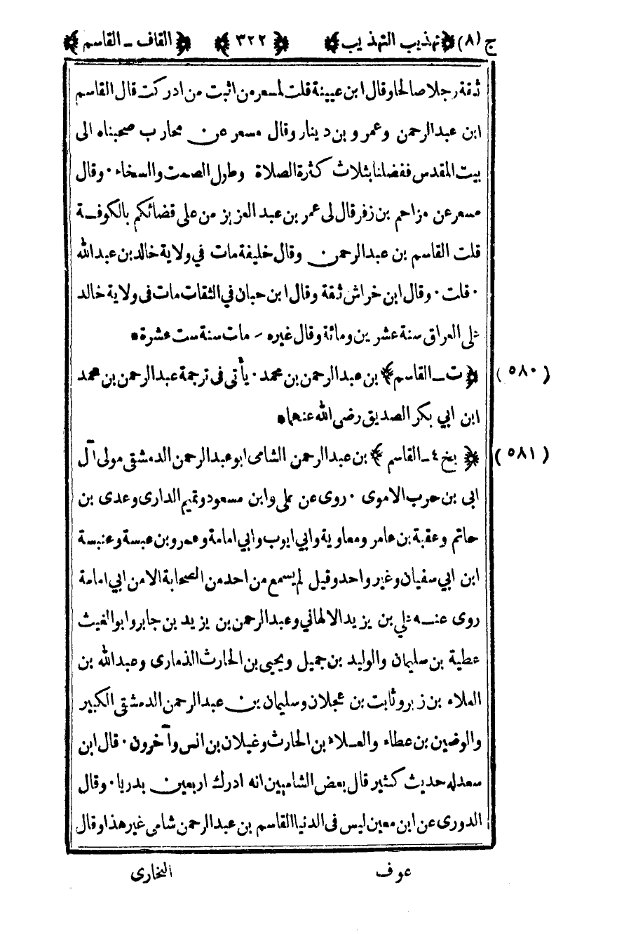 582– "ت الترمذي القاسم بن عبد الرحمن بن محمد يأتي في ترجمة عبد الرحمن بن محمد بن أبي بكر الصديق رضي الله عنهما