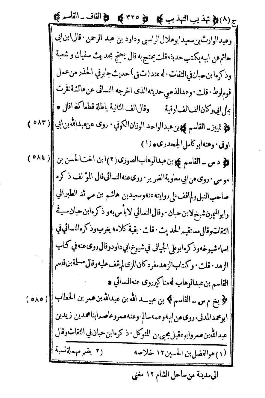 585- تمييز – القاسم" بن عبد الواحد الوزان الكوفي روى عن عبد الله بن أبي أوفى وعنه أبو كامل الجحدري1