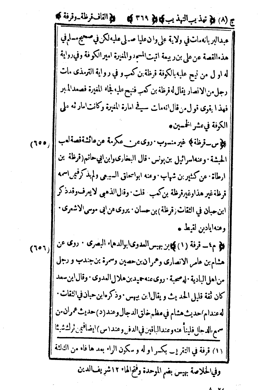 1 قرفة في التقريب بكسر أوله وسكون الراء بعدها فاء من الثالثة وفي الخلاصة بهيس بضم الموحدة وفتح الهاء 12 شريف الدين اتقاء الله قلت وقال العجلي بصري تابعي ثقة