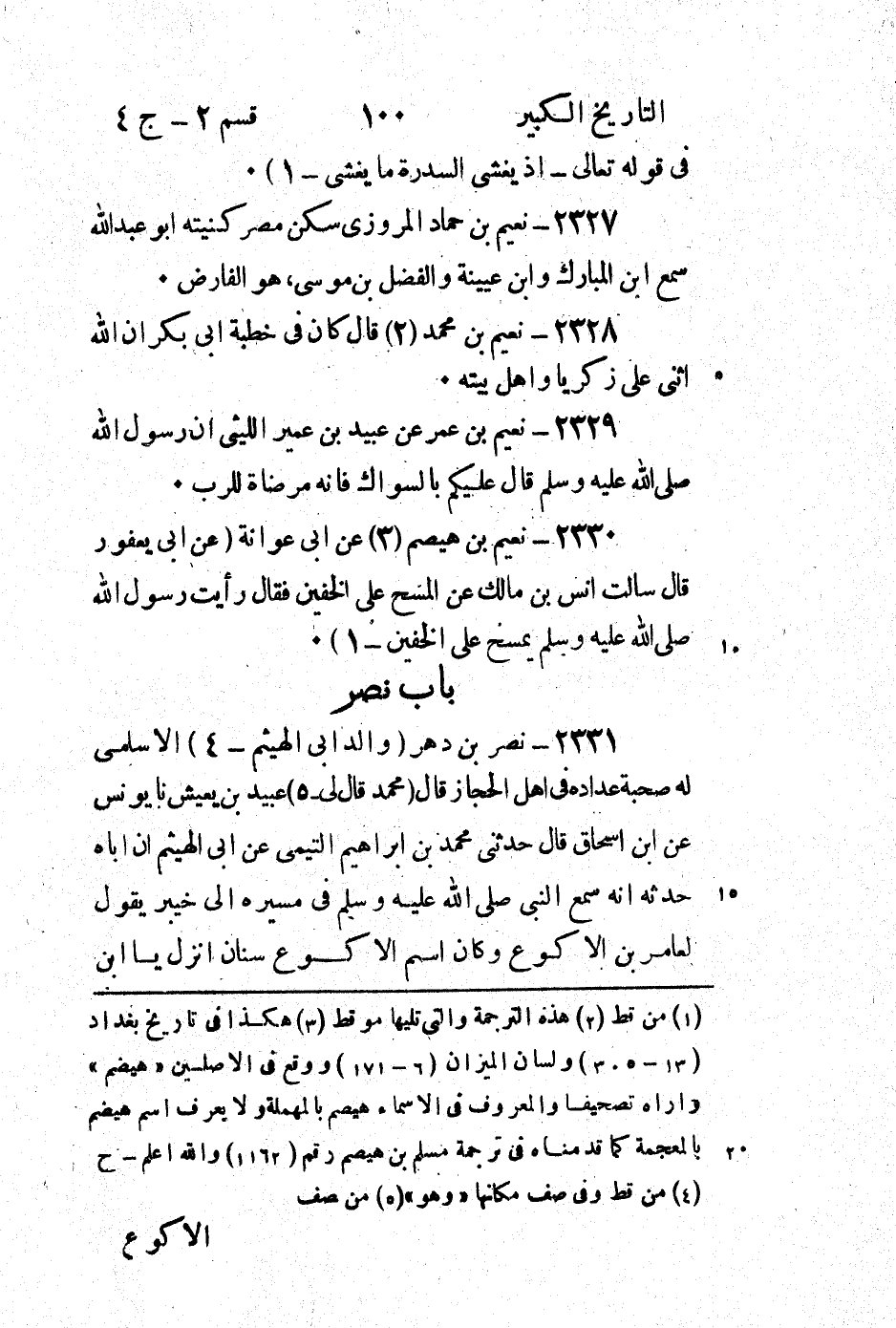 2330 - نعيم بْن هيصم (3) عَنْ أَبِي عوانة (عَنْ أَبِي يعفور قَالَ سألت أنس بْن مالك عَنِ المسح على الخفين فَقَالَ رَأَيْتُ رَسُولَ اللَّهِ صَلَّى اللَّهُ عَلَيْهِ وَسَلَّمَ يمسح على الخفين - 1) .