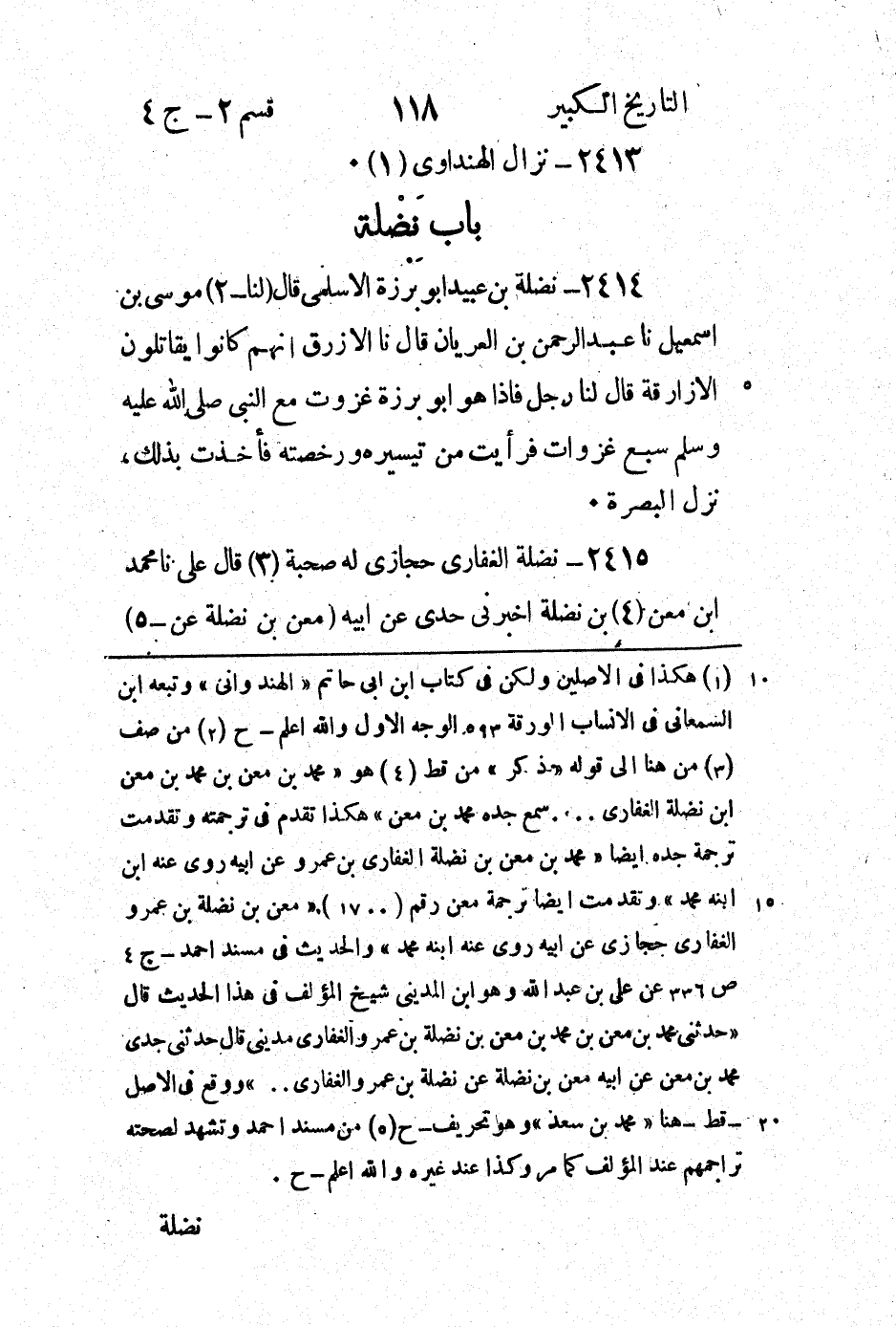 2415 - نَضْلَةُ الْغِفَارِيُّ حِجَازِيُّ لَهُ صحبة (3) قال على نا محمد ابن معن (4) بن نضلة أخبرني حدي عن أبيه (معن بن نضلة عن - 5)