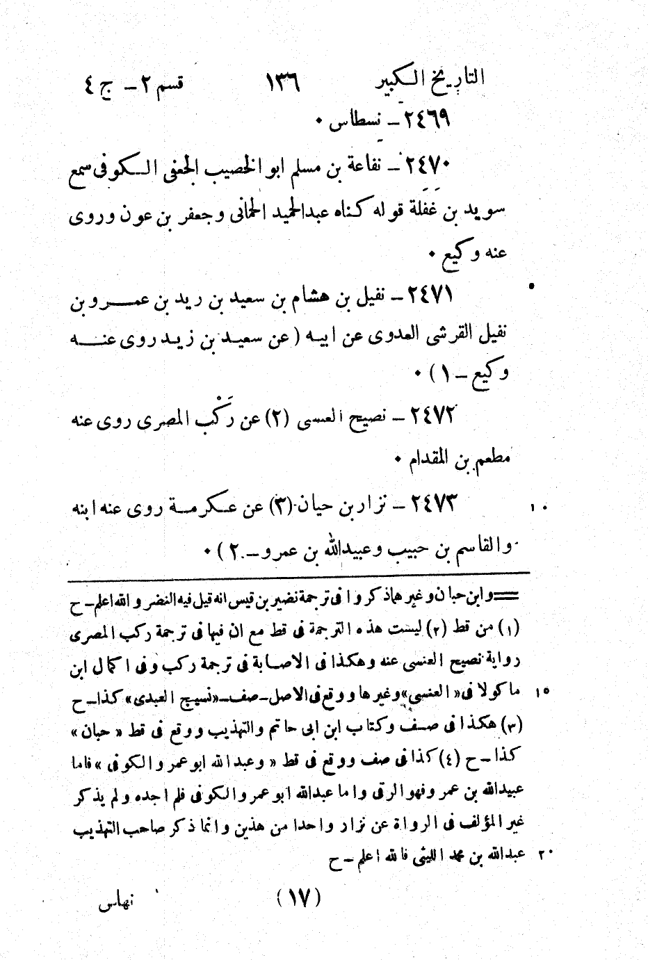 2473 - نزار بْن حيان (3) عَنْ عكرمة روى عَنْهُ ابنه والقاسم بْن حبيب وعُبَيْد اللَّه بن عمرو - 2) .