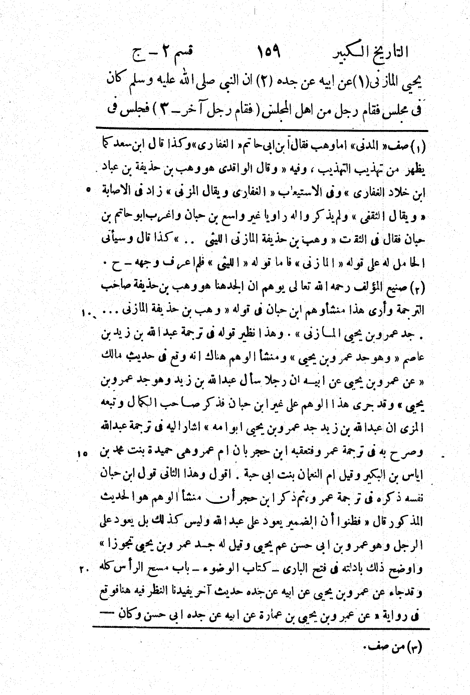 (2) صنيع المؤلف رحمه الله تعالى يوهم ان الجد هنا هو وهب بن حذيفة صاحب الترجمة وأرى هذا منشأ وهم ابن حبان في قوله " وهب بن حذيفة المازني..جد عمرو بن يحيى المازني ".