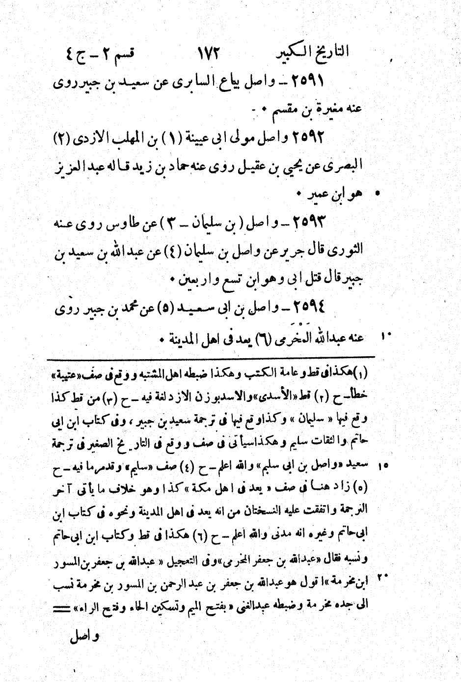 (1) هكذا في قط وعامة الكتب وهكذا ضبطه أهل المشتبه ووقع في صف " عتيبة " خطأ - ح (2) قط " الاسدي " والاسد بوزن الازد لغة فيه - ح (3) من قط كذا وقع فيها " سليمان " وكذا وقع فيها في ترجمة سعيد بن جبير، وفي كتاب ابن أبي حاتم والثقات سليم وهكذا سيأتي في صف ووقع في التاريخ الصغير في ترجمة سعيد " واصل بن أبي سليم " والله أعلم - ح (4) صف " سليم " وقد مر ما فيه - ح (5) زاد هنا في صف " يعد في أهل مكة " كذا وهو خلاف ما يأتي آخر