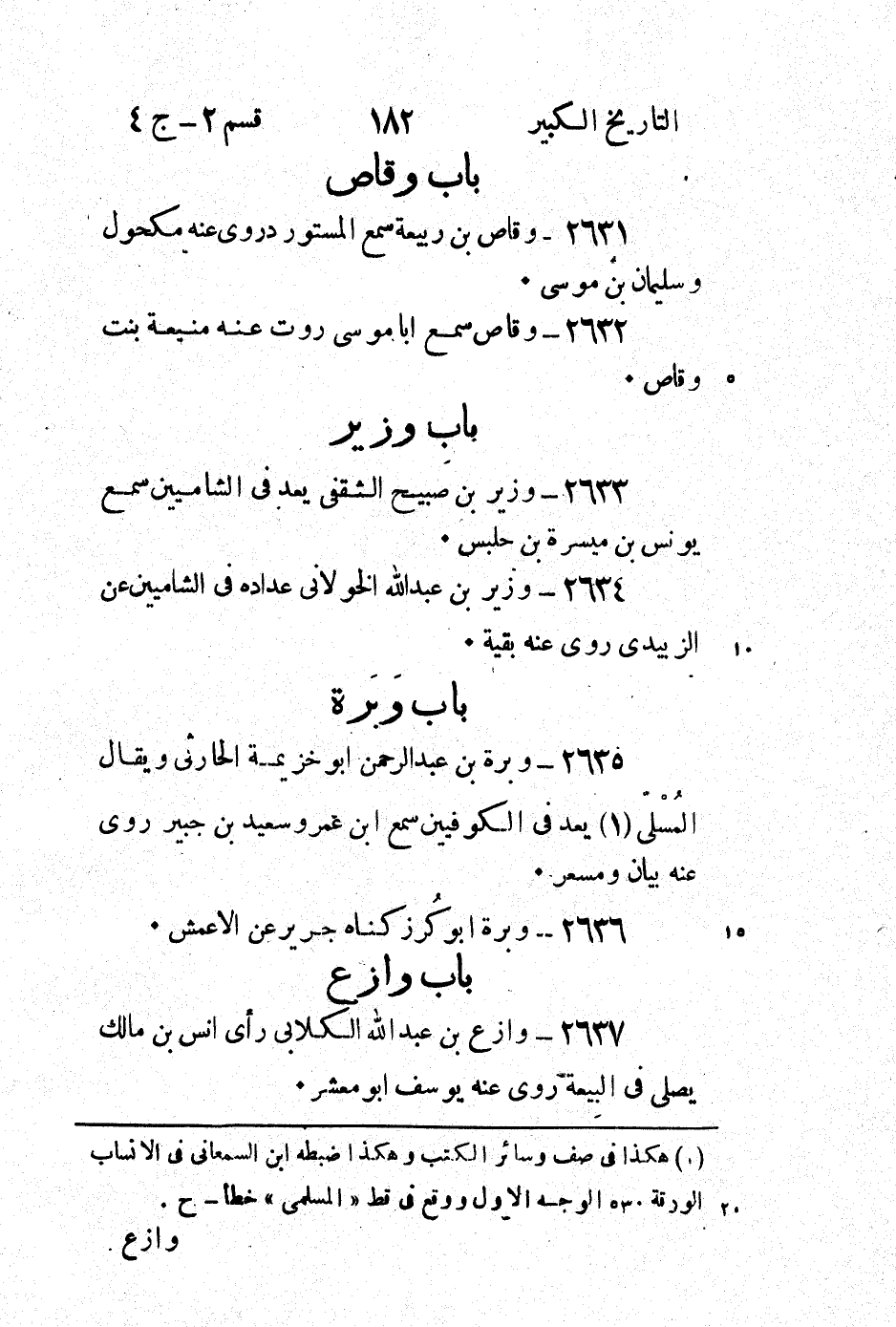 2635 - وبرة بْن عَبْد الرَّحْمَن أَبُو خزيمة الحارثي ويقال المسلمى (1) يعد فِي الكوفِيين سَمِعَ ابْن عُمَر وسَعِيد بْن جُبَيْر روى عَنْهُ بيان ومسعر