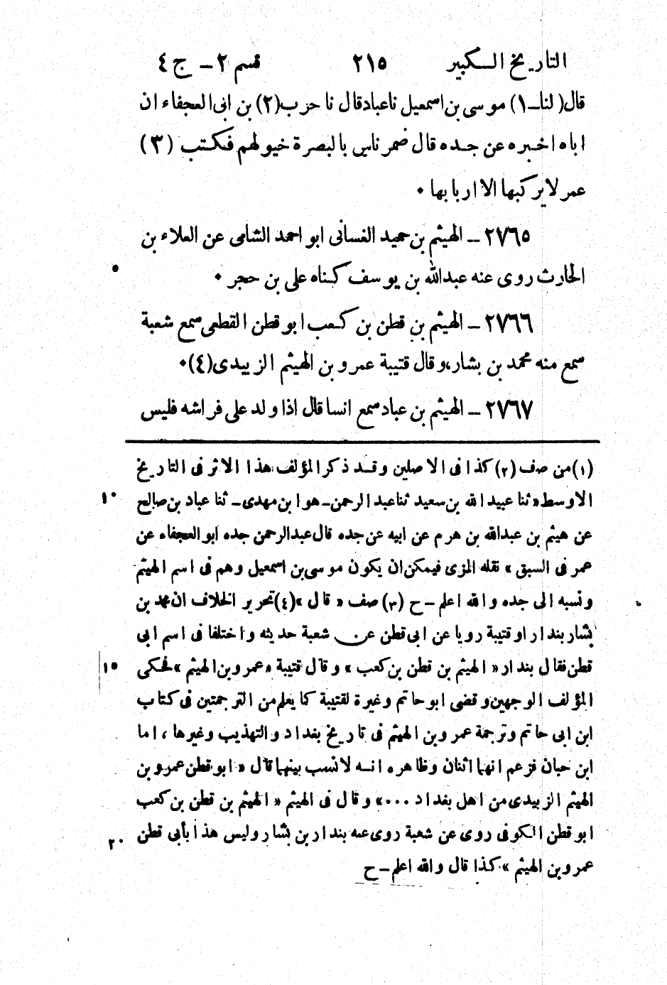 2766 - الهيثم بْن قطن بْن كعب أَبُو قطن القطعي سَمِعَ شُعْبَة سَمِعَ منه مُحَمَّد بْن بشار، وقَالَ قتيبة عمرو بن الهيثم الزبيدي (4) .