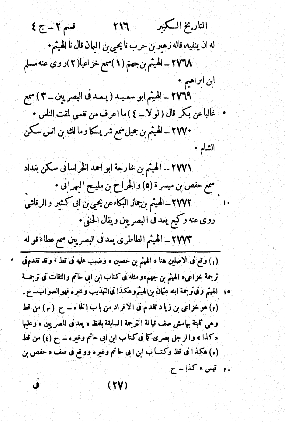 (1) وقع في الاصلين هنا " الهيثم بن حصين " وضبب عليه في قط، وقد تقدم في ترجمة خزاعي " الهيثم بن جهم " ومثله في كتاب ابن أبي حاتم والثقات في ترجمة الهيثم وفي ترجمة ابنه عثمان بن الهيثم وهكذا في التهذيب وغيره فهو الصواب - ح.