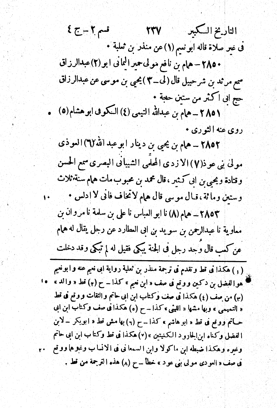 2852 - همام بْن يحيى بْن دينار أَبُو عَبْد اللَّه (6) العوذي مولى بني عوذ (7) الْأَزْدِيّ المحلمي الشيباني الْبَصْرِيّ سَمِعَ الْحَسَن
