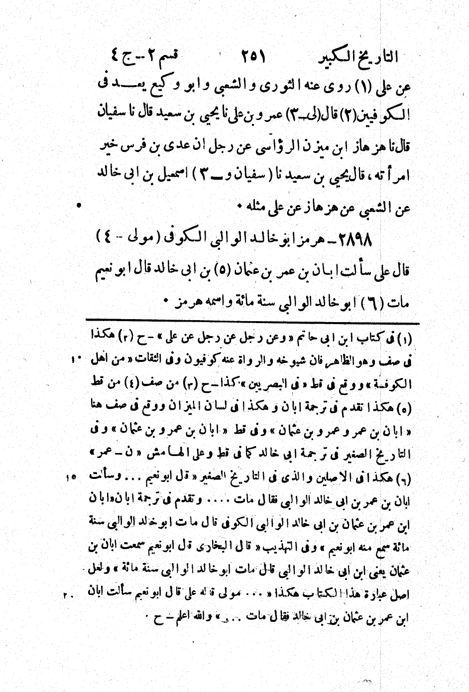 2898 - هُرْمُزُ أَبُو خَالِدٍ الْوَالِبِيُّ الْكُوفِيُّ (مَوْلًى - 4) قَالَ علي سألت أبان بْن عُمَر بْن عثمان (5) بْن أَبِي خَالِد قَالَ أَبُو نعيم مات (6) أَبُو خَالِد الوالبي سنة مائة واسمه هرمز.