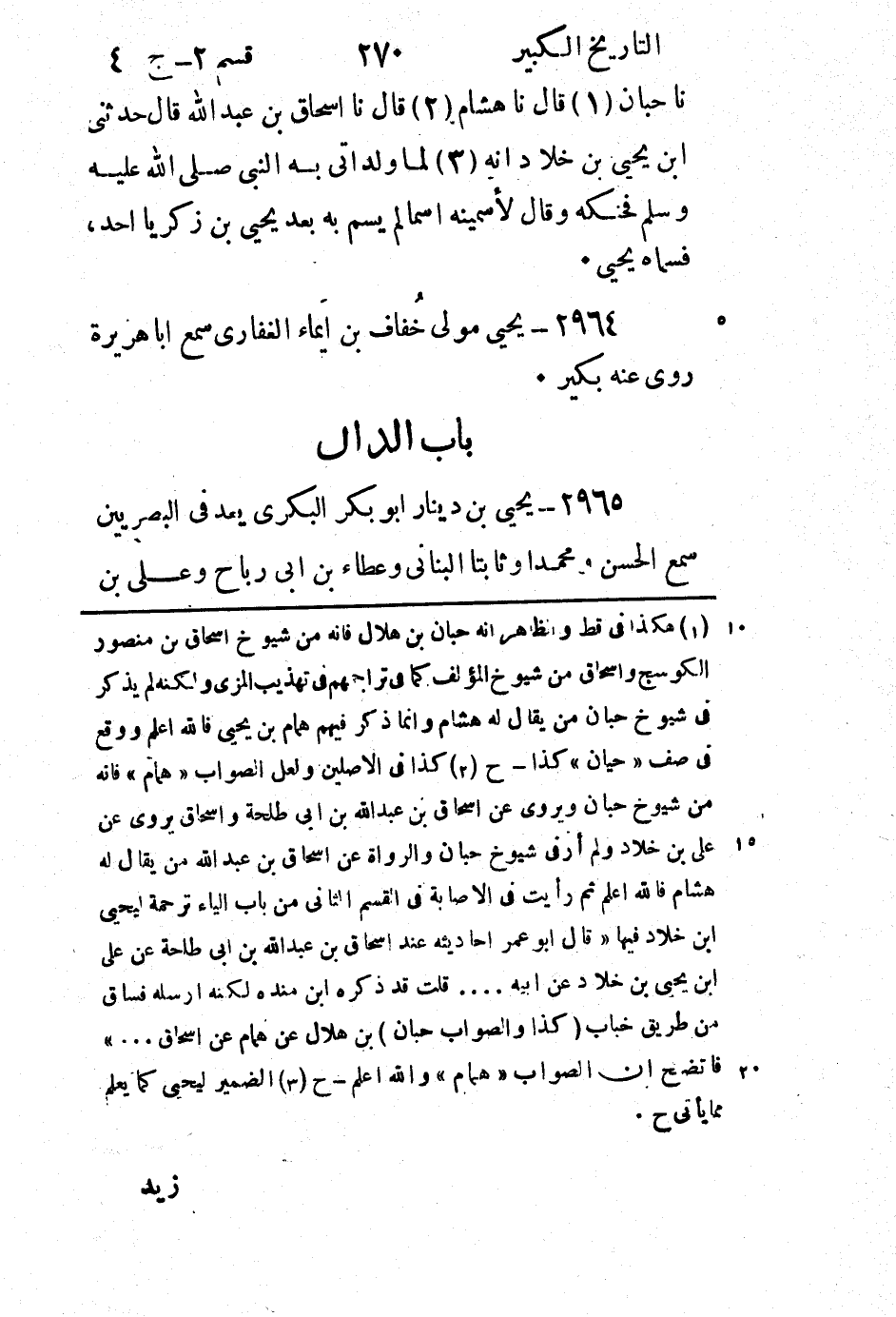 (1)) هكذا في قط والظاهر انه حبان بن هلال فانه من شيوخ اسحاق بن منصور الكوسج واسحاق من شيوخ المؤلف كما في تراجمهم في تهذيب المزى ولكنه لم يذكر في شيوخ حبان من يقال له هشام وانما ذكر فيهم همام بن يحيى فالله اعلم ووقع في صف " حيان " كذا - ح (2) كذا في الاصلين ولعل الصواب " همام " فانه من شيوخ حبان ويروى عَنْ إِسْحَاق بْن عَبْد اللَّه بْن أَبِي طلحة واسحاق يروى عن علي بن خلاد ولم أر في شيوخ حبان والرواة عن اسحاق بن عبد الله من يقال له هشام فالله اعلم ثم رأيت في الاصابة في القسم الثاني من باب الياء ترحمة ليحيي ابن خلاد فيها " قال أبو عمر احاديثه عند اسحاق بن عبد الله بن أبي طلحة عن علي ابن يحيي بن خلاد عن ابيه..قلت قد ذكره ابن منده لكنه ارسله فساق من طريق خباب (كذا والصواب حبان) بن هلال عن همام عن اسحاق.." فاتضح فان الصواب " همام " والله اعلم - ح (3) الضمير ليحيى كما يعلم مما يأتي ح.