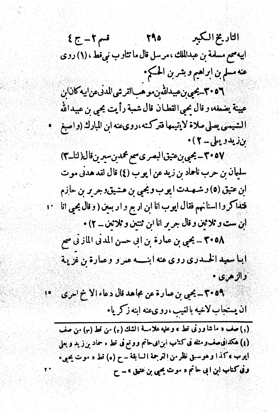 (1) صف " ما شاورني قط " وعليه علامة الشك (2) من قط (3) من صف (4) هكذا في صف ومثله في كتاب ابن أبي حاتم ووقع في قط " حماد بن زيد ويعلى ايوب " كذا وهو سبق نظر من الترجمة السابقة - ح (5) قط " موت يحيى " وفي كتاب ابن أبي حاتم " موت يحيى بن عتيق " - ح (*)