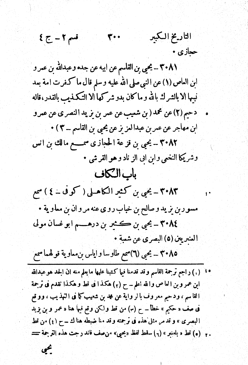 3083 - يحيى بْن كثير الكاهلي (كوفِي - 4) سَمِعَ مسور بْن يزيد وصالح بْن خباب روى عَنْهُ مروان بْن معاوية.