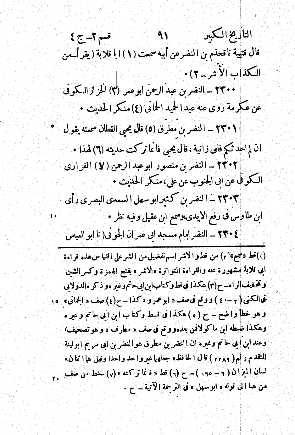 2300 - النضر بْن عَبْد الرَّحْمَن أَبُو عُمَر (3) الخزاز الكوفِي عَنْ عكرمة روى عنه عَبْد الحميد الحماني (4) منكر الحديث.