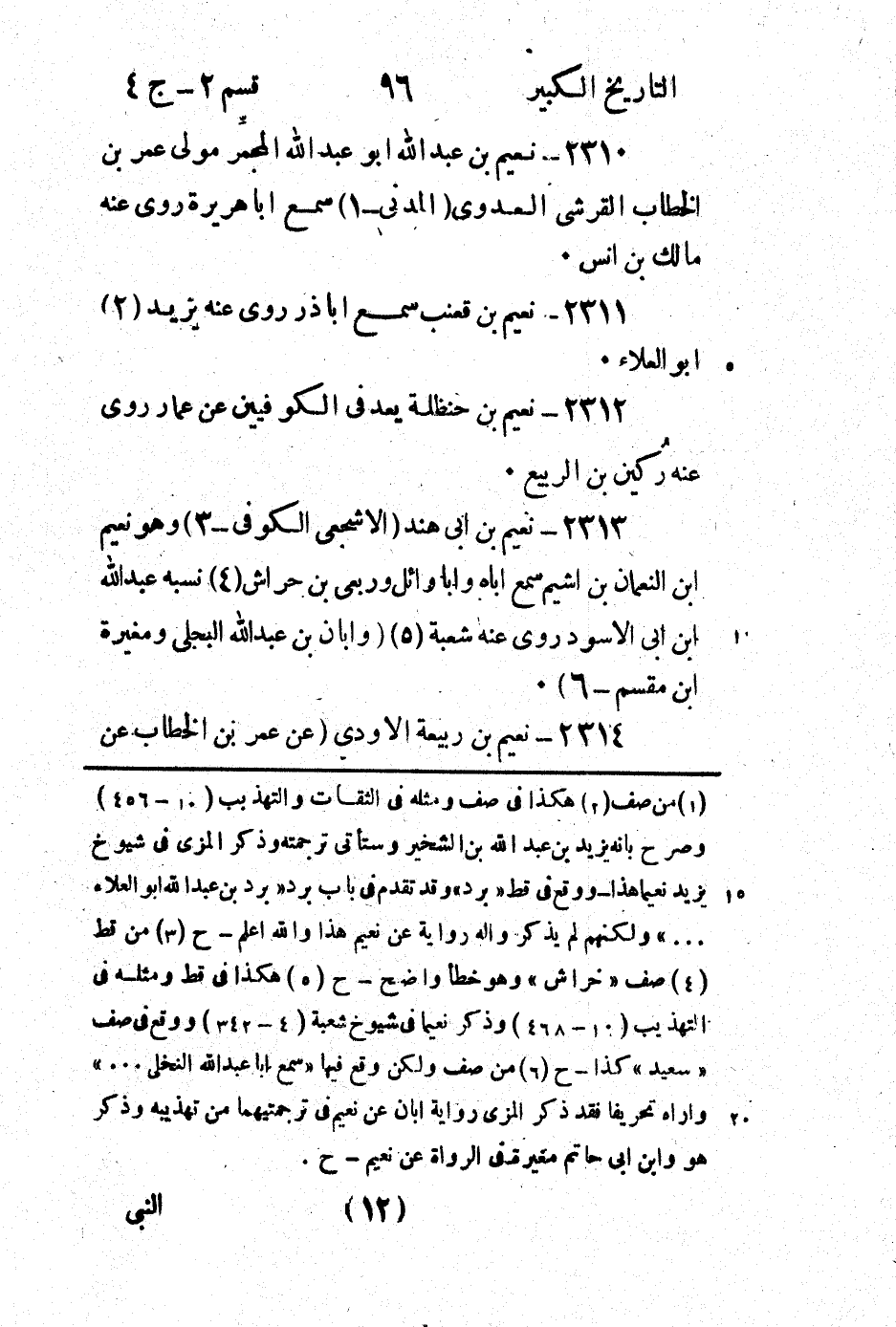 2310 - نعيم بْن عَبْد اللَّه أَبُو عَبْد اللَّه المجمر مولى عمر بن الخطا ب الْقُرَشِيّ العدوي (الْمَدَنِيّ - 1) سَمِعَ أبا هُرَيْرَةَ روى عنه مالك بْن أنس.