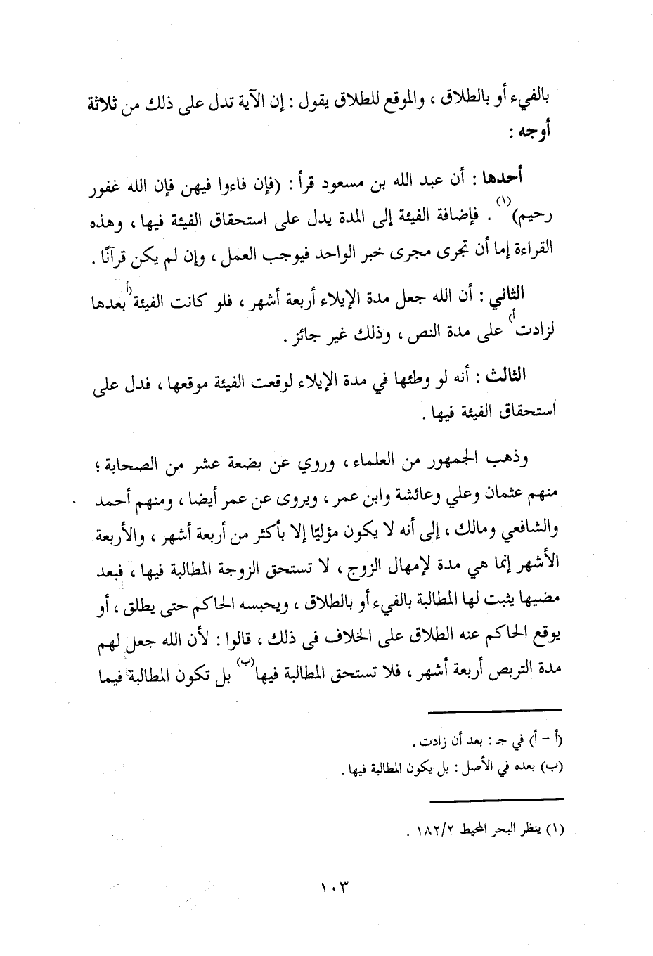 الثاني: أن الله جعل مدة الإيلاء أربعة أشهر، فلو كانت الفيئة (أبعدها لزادت أ) على مدة النص، وذلك غير جائز.