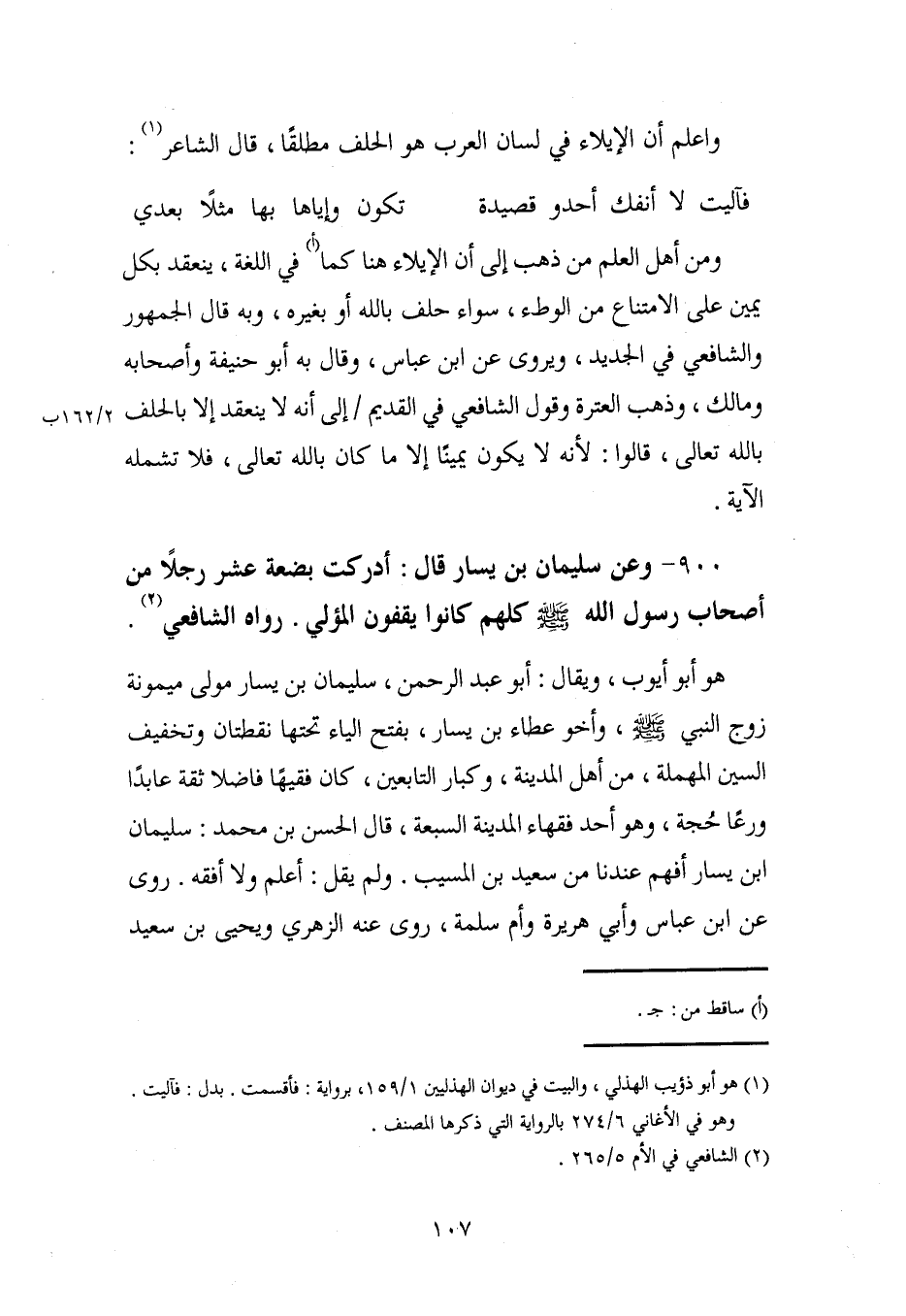 900 - وعن سليمان بن يسار قال: أدركت بضعة عشر رجلًا من أصحاب رسول الله - صلى الله عليه وسلم - كلهم كانوا يقفون المؤلي. رواه الشافعي (¬2).