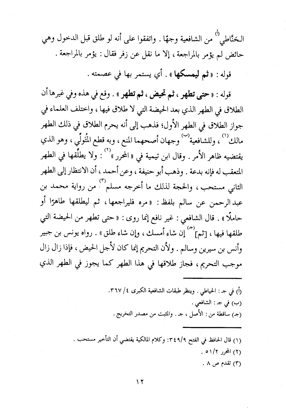 الحَنَّاطي (أ) من الشافعية وجهًا. واتفقوا على أنه لو طلق قبل الدخول وهي حائض لم يؤمر بالمراجعة، إلا ما نقل عن زفر فقال: يؤمر بالمراجعة.
