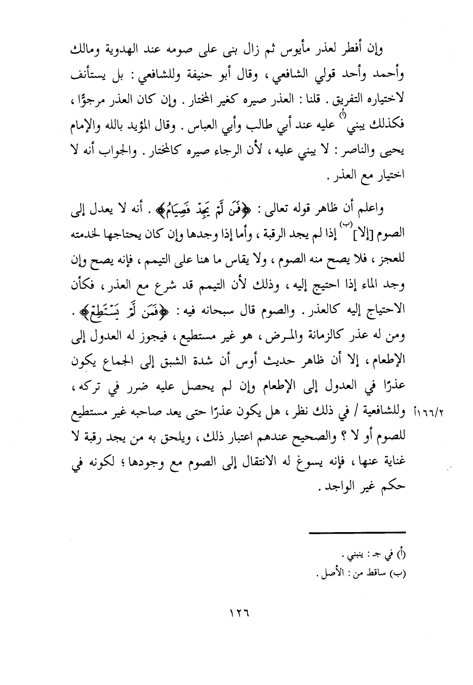 واعلم أن ظاهر قوله تعالى: {فَمَنْ لَمْ يَجِدْ فَصِيَامُ}. أنه لا يعدل إلى الصوم [إلا] (ب) إذا لم يجد الرقبة، وأما إذا وجدها وإن كان يحتاجها لخدمته للعجز، فلا يصح منه الصوم، ولا يقاس ما هنا على التيمم، فإنه يصح وإن وجد الماء إذا احتيج إليه، وذلك لأن التيمم قد شرع مع العذر، فكأن الاحتياج إليه كالعذر. والصوم قال سبحانه فيه: {فَمَنْ لَمْ يَسْتَطِعْ}. ومن له عذر كالزمانة والمرض، هو غير مستطيع، فيجوز له العدول إلى الإطعام، إلا أن ظاهر حديث أوس أن شدة الشبق إلى الجماع يكون عذرًا في العدول إلى الإطعام وإن لم يحصل عليه ضرر في تركه، وللشافعية في ذلك نظر، هل يكون عذرًا حتى يعد صاحبه غير مستطيع للصوم أو لا؟ والصحيح عندهم اعتبار ذلك، ويلحق به من يجد رقبة لا غناية عنها، فإنه يسوغ له الانتقال إلى الصوم مع وجودها؛ لكونه في حكم غير الواجد.