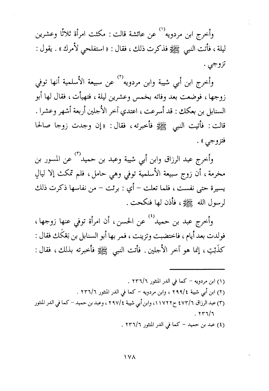 وأخرج عبد بن حميد (¬4) عن الحسن، ان امراة توفي عنها زوجها، فولدت بعد أيام، فاختضبت وتزينت، فمر بها أبو السنابل بن بَعْكَك فقال: كذَبْتِ، إنما هو آخر الأجلين. فأتت النبي - صلى الله عليه وسلم - فأخبرته بذلك، فقال: