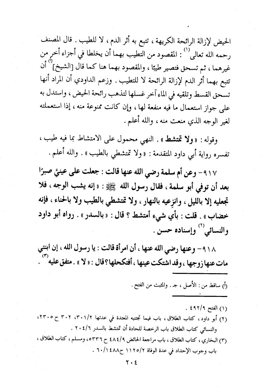 (¬2) أبو داود، كتاب الطلاق، باب فيما تجتنبه المعتدة في عدتها 2/ 301، 302 ح 2305، والنسائي كتاب الطلاق باب الرخصة للحادة أن تمتشط بالسدر 6/ 204.