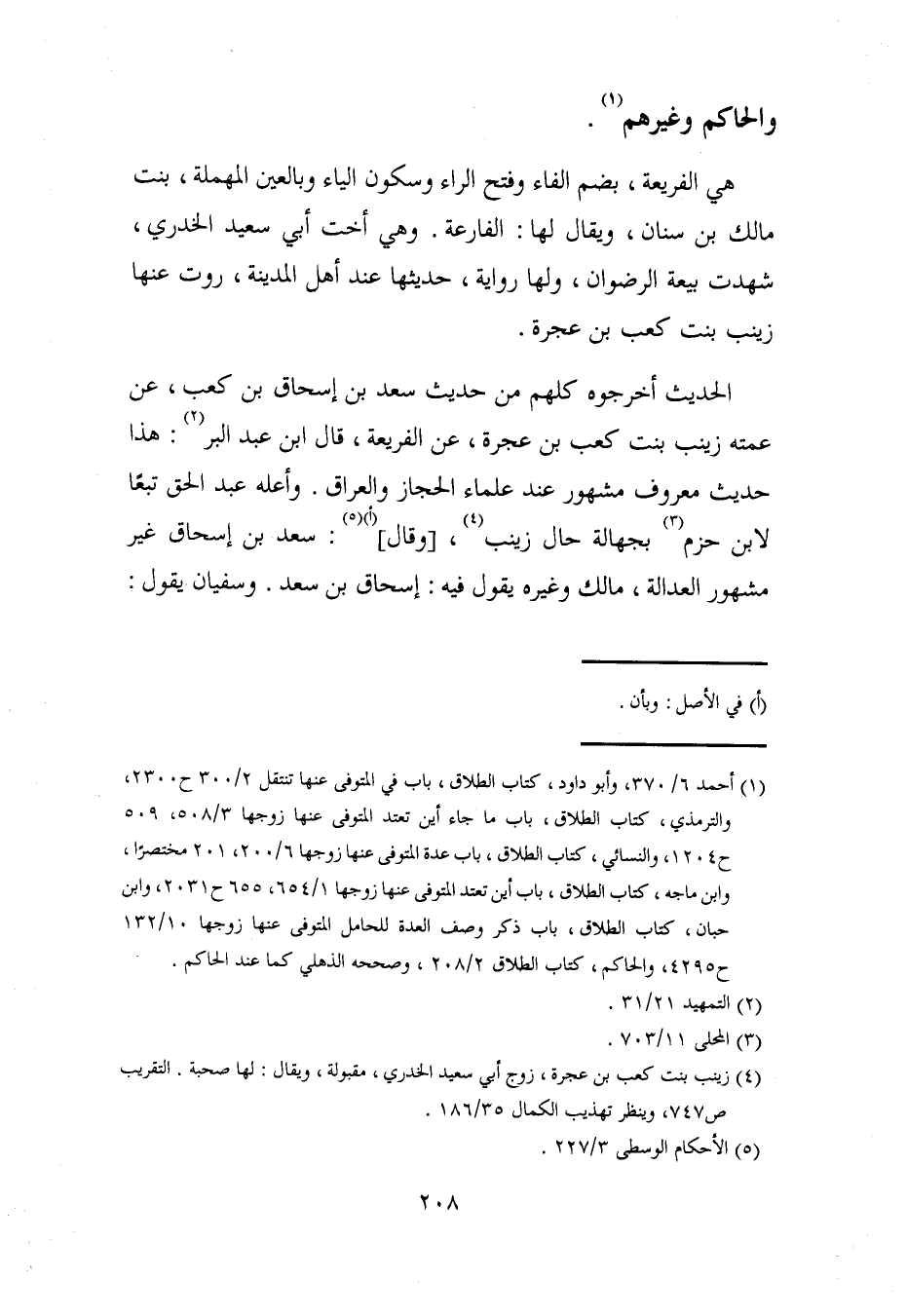 (¬1) أحمد 6/ 370، وأبو داود، كتاب الطلاق، باب في المتوفى عنها تنتقل 2/ 300 ح 2300، والترمذي، كتاب الطلاق، باب ما جاء أين تعتد المتوفى عنها زوجها 3/ 508، 509 ح 1204، والنسائي، كتاب الطلاق، باب عدة المتوفى عنها زوجها 6/ 200، 201 مختصرًا، وابن ماجه، كتاب الطلاق، باب أين تعتد المتوفى عنها زوجها 1/ 654، 655 ح 2031، وابن حبان، كتاب الطلاق، باب ذكر وصف العدة للحامل المتوفى عنها زوجها 10/ 132 ح 4295، والحاكم، كتاب الطلاق 2/ 208، وصححه الذهلي كما عند الحاكم.