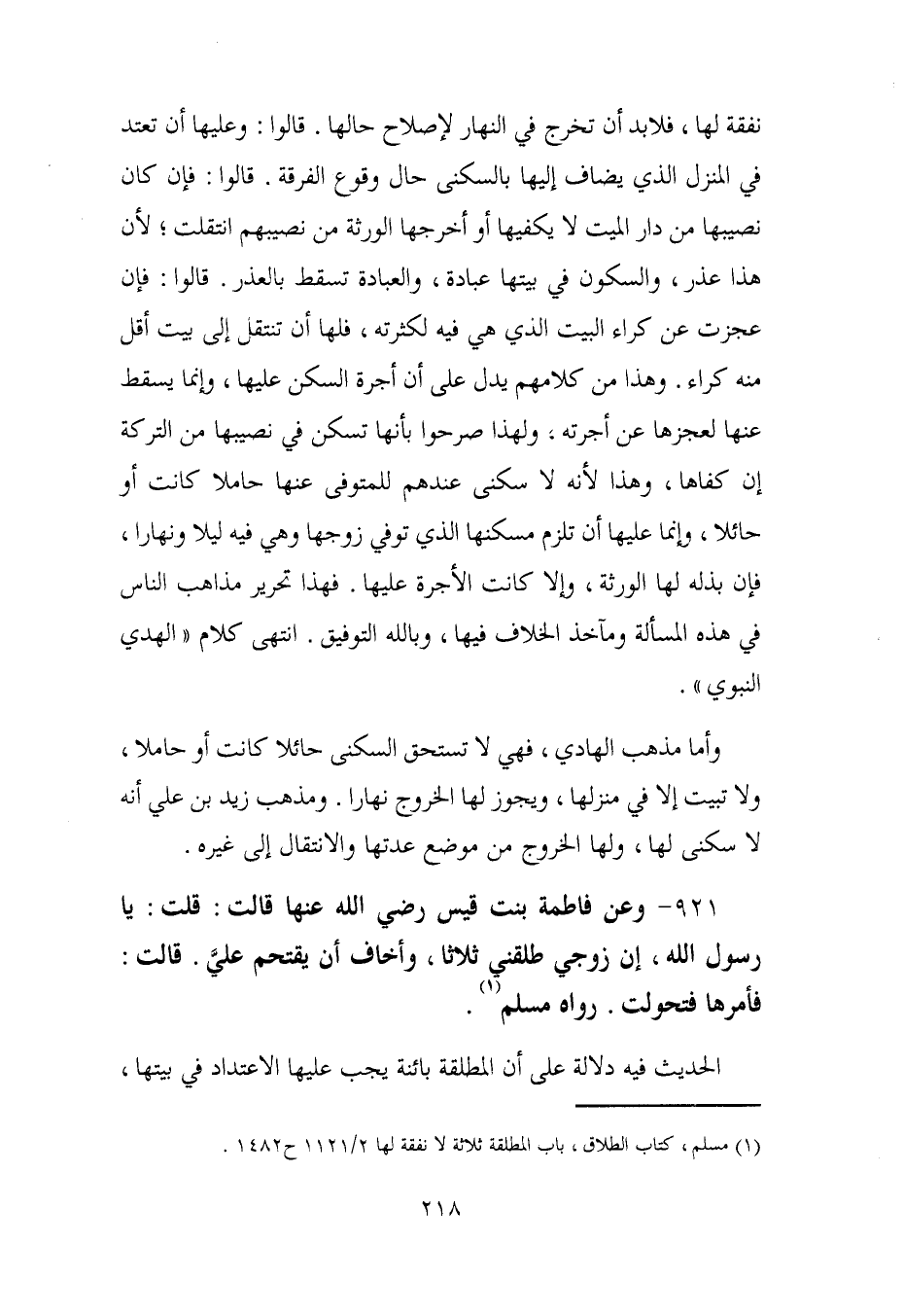 (¬1) مسلم، كتاب الطلاق، باب المطلقة ثلاثا لا نفقة لها 2/ 1121 ح 1482.