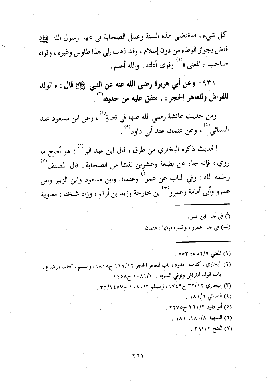 (¬2) البخاري، كتاب الحدود، باب للعاهر الحجر 12/ 127 ح 6818، ومسلم، كتاب الرضاع، باب الولد للفراش وتوقي الشبهات 2/ 1081 ح 1458.
