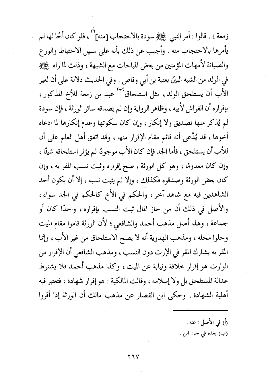 زمعة". قالوا: أمر النبي - صلى الله عليه وسلم - سودة بالاحتجاب [منه] (أ)، فلو كان أخًا لها لم يأمرها بالاحتجاب منه. وأجيب عن ذلك بأنه على سبيل الاحتياط والورع والصيانة لأمهات المؤمنين من بعض المباحات مع الشبهة، وذلك لما رآه - صلى الله عليه وسلم - في الولد من الشبه البيّن بعتبة بن أبي وقاص. وفي الحديث دلالة على أن لغير الأب أن يستلحق الولد، مثل استلحاق (ب) عبد بن زمعة للأخ المذكور، بإقراره أن الفراش لأبيه، وظاهر الرواية وإن لم يصدقه سائر الورثة، فإن سودة لم يُذكر منها تصديق ولا إنكار، وإن كان سكوتها وعدم إنكارها لما ادعاه أخوها، قد يُدَّعى أنه قائم مقام الإقرار منها، وقد اتفق أهل العلم على أن للأب أن يستلحق، فأما الجد فإن كان الأب موجودًا لم يؤثر استلحاقه شيئًا، وإن كان معدومًا، وهو كل الورثة، صح إقراره وثبت نسب المقر به، وإن كان بعض الورثة وصدقوه فكذلك، وإلا لم يثبت نسبه، إلا أن يكون أحد الشاهدين فيه مع شاهد آخر، والحكم في الأخ كالحكم في الجد سواء، والأصل في ذلك أن من حاز المال ثبت النسب بإقراره، واحدًا كان أو جماعة، وهذا أصل مذهب أحمد والشافعي؛ لأن الورثة قاموا مقام الميت وحلوا محله، ومذهب الهدوية أنه لا يصح الاستلحاق من غير الأب، وإنما المقر به يشارك المقر في الإرث دون النسب، ومذهب الشافعي أن الإقرار من الوارث هو إقرار خلافة ونيابة عن الميت، وكذا مذهب أحمد فلا يشترط عدالة المستلحق بل ولا إسلامه، وقالت المالكية: هو إقرار شهادة، فتعتبر فيه أهلية الشهادة. وحكى ابن القصار عن مذهب مالك أن الورثة إذا أقروا