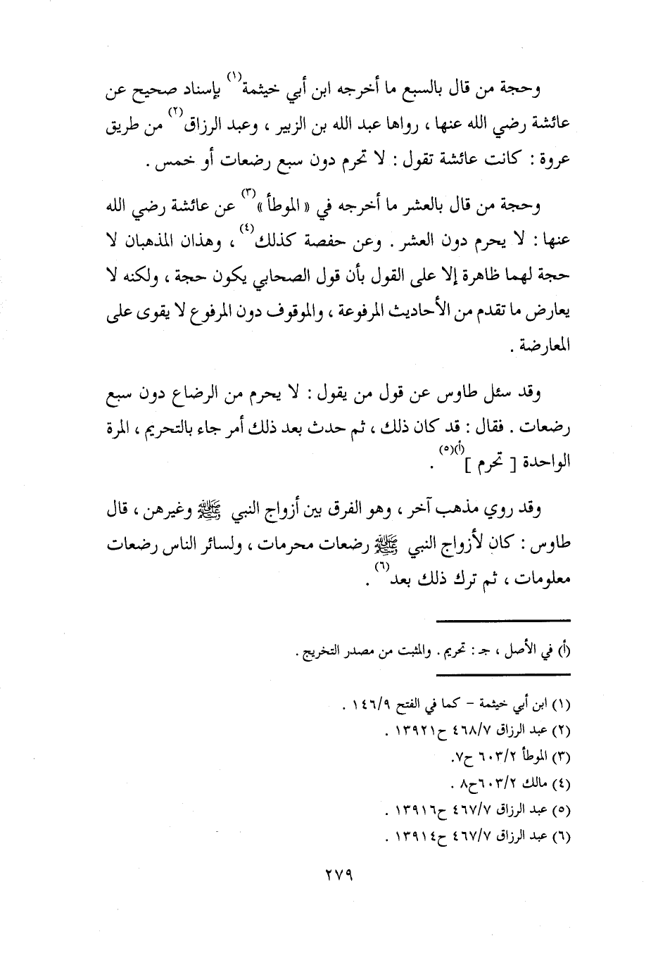 وحجة من قال بالسبع ما أخرجه ابن أبي خيثمة (¬1) بإسناد صحيح عن عائشة رضي الله عنها، رواها عبد الله بن الزبير، وعبد الرزاق (¬2) من طريق عروة: كانت عائشة تقول: لا تحرم دون سبع رضعات أو خمس.