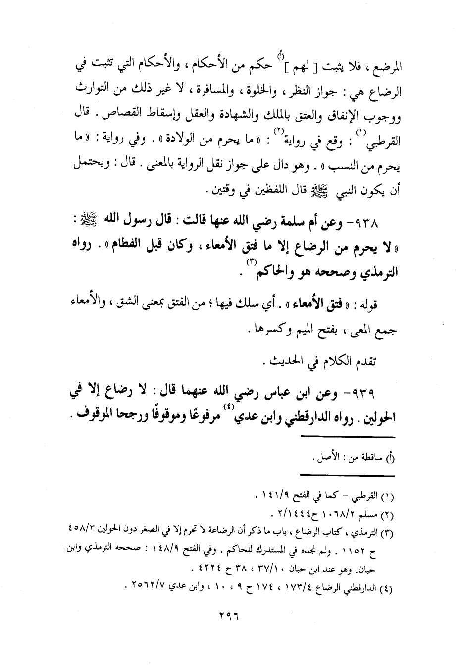 938 - وعن أم سلمة رضي الله عنها قالت: قال رسول الله - صلى الله عليه وسلم -: "لا يحرم من الرضاع إلا ما فتق الأمعاء، وكان قبل الفطام" .. رواه الترمذي وصححه هو والحاكم (¬3).